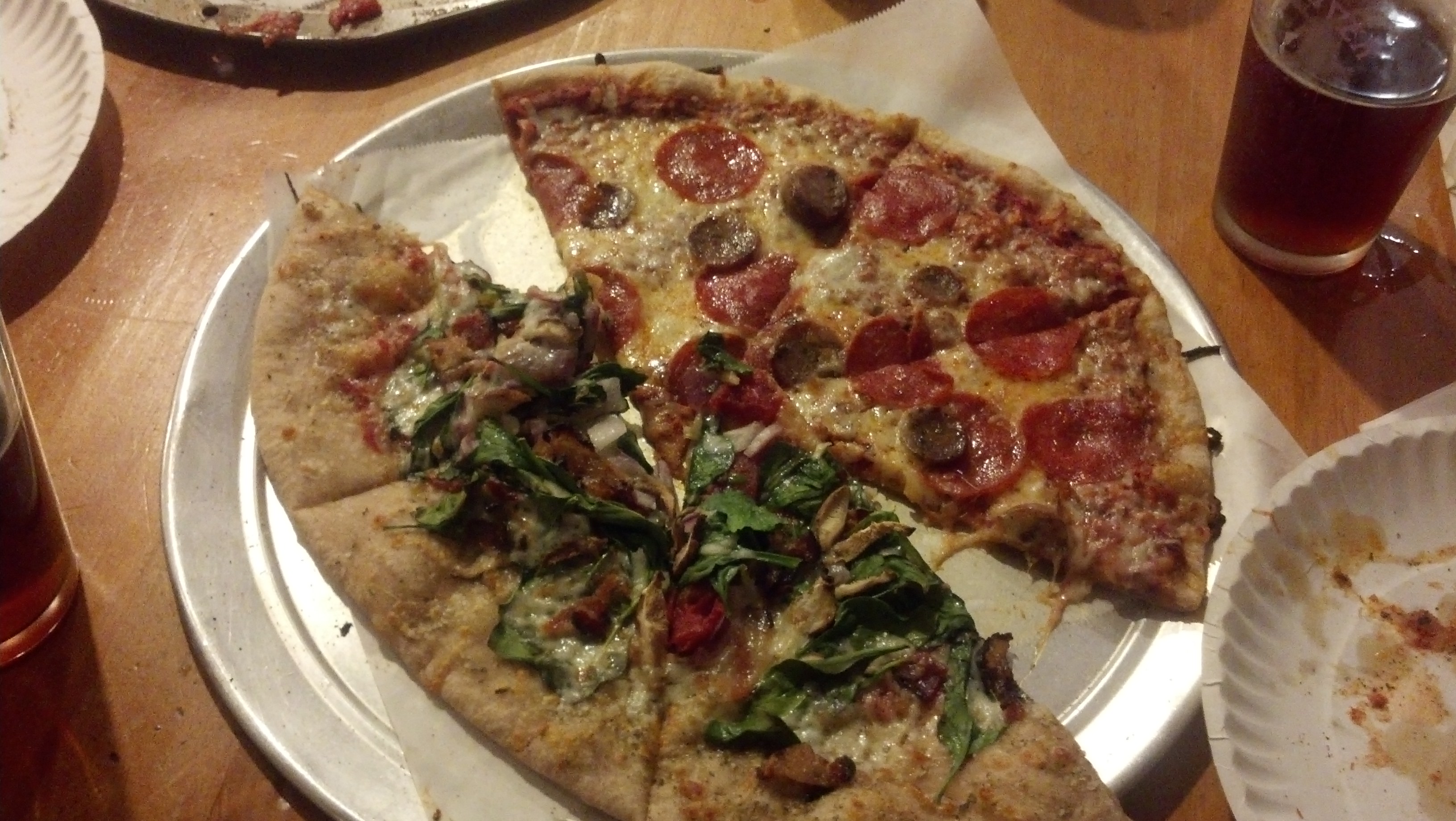 The pizza menu is posted on handwritten signs all around the room, including unique specials. If no one in your group gets the Smokin Hot Trout, shame on you–that’s what it’s all about! How often can you get smoked trout on a pizza? One of my friends used to hang out at Trout River when he was in college at Lyndon State, and he told me that the pizza crust is made from brewer’s yeast, and that they only make a limited amount per day, so if you miss it, too bad!